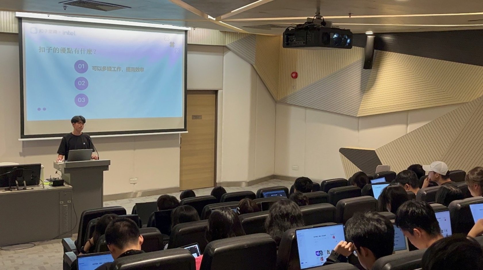 接下來活動進入核心的扣子功能教學與上手體驗環節。主講人針對扣子的長文寫作、平面設計、PPT 製作、播客製作、網頁生成、Excel 處理六大核心功能,逐項開展教學,先由主講人現場演示扣子空間的操作步驟與技巧,比如如何用扣子快速生成結構完整的長文、如何調整平面設計的風格細節、如何利用模板高效製作 PPT 等;而後留出時間讓同學們親自上機體驗,根據自己的需求嘗試製作喜愛的內容,工作人員則在現場巡迴指導,及時解答同學們操作中遇到的問題,確保每一位同學都能跟上節奏、學會用法。