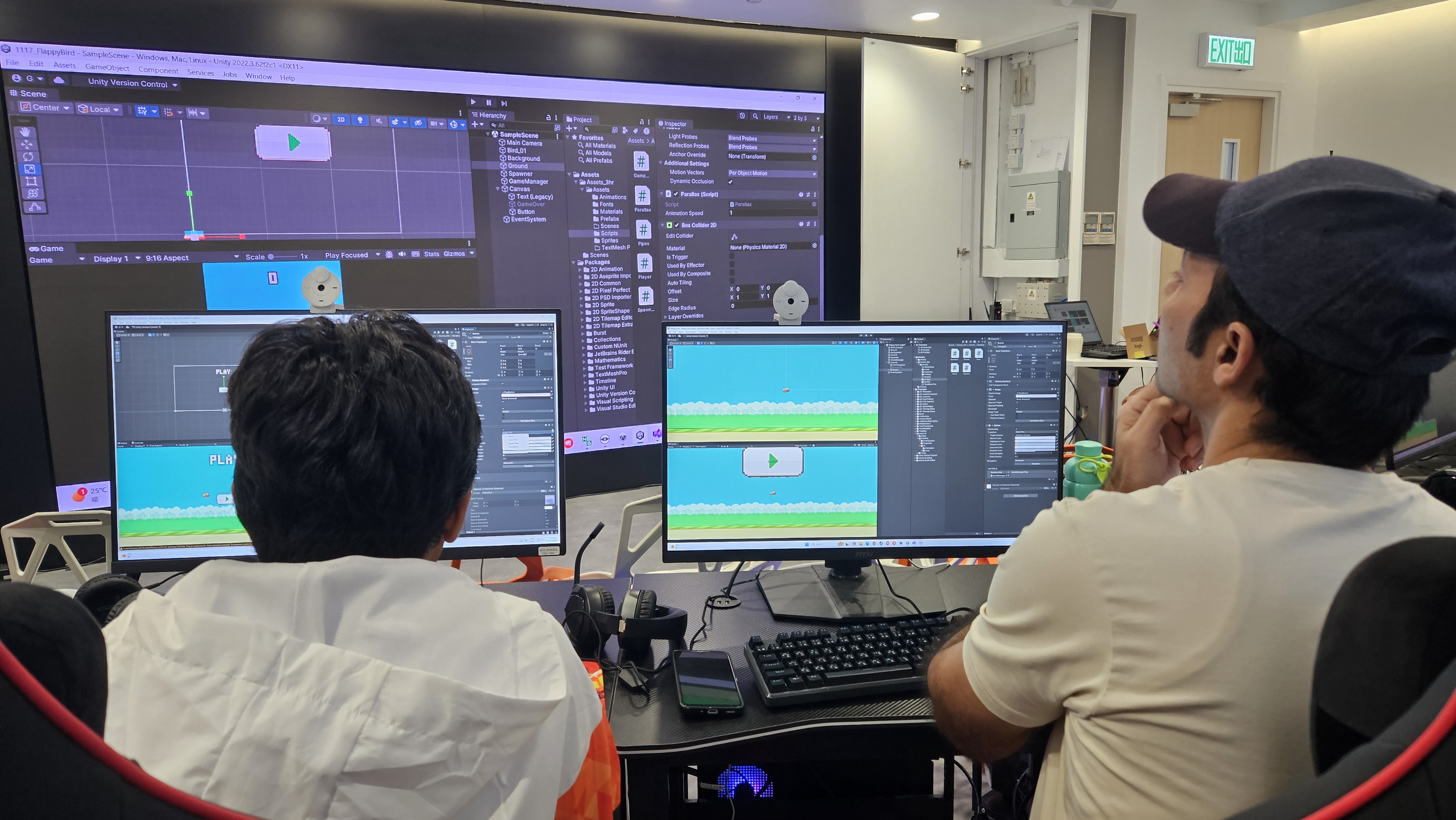 On 17 November 2025, Game Development Laboratory and VR Lab co-hosted an intensive workshop on building a Unity 2D game. This workshop guides all participants in building an infinite side-scroller where a bird navigates between green pipes, incorporating physics-based movement, collision detection, scoring systems, a polished UI, and game state management. Within four hours, all participants have successfully recreated the classic Flappy Bird game in Unity and published it on Itch.io. This workshop offers a great opportunity for our students to develop their hands-on technical skills and encourages them to start building their creative portfolios using a simple game mechanism.