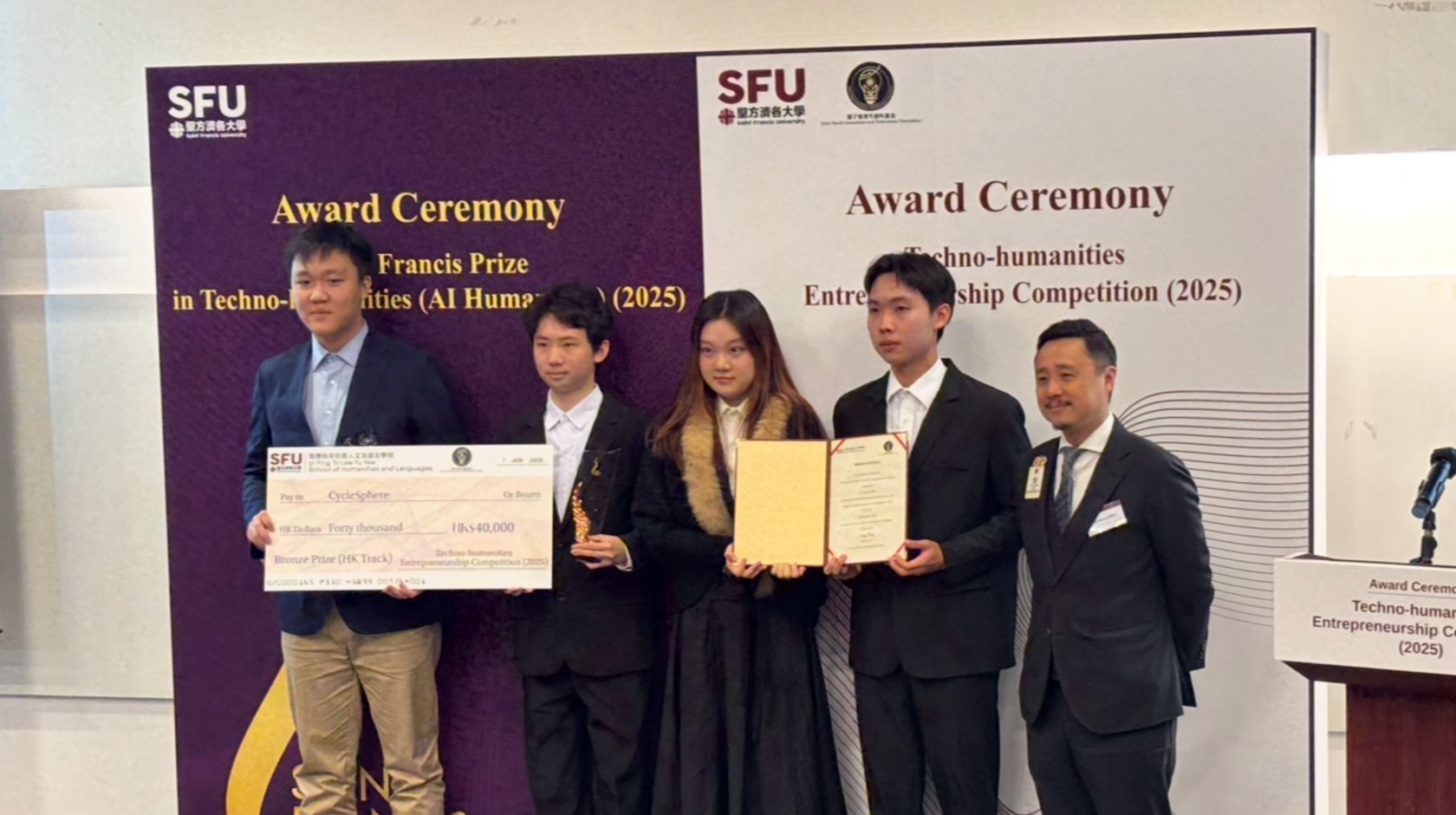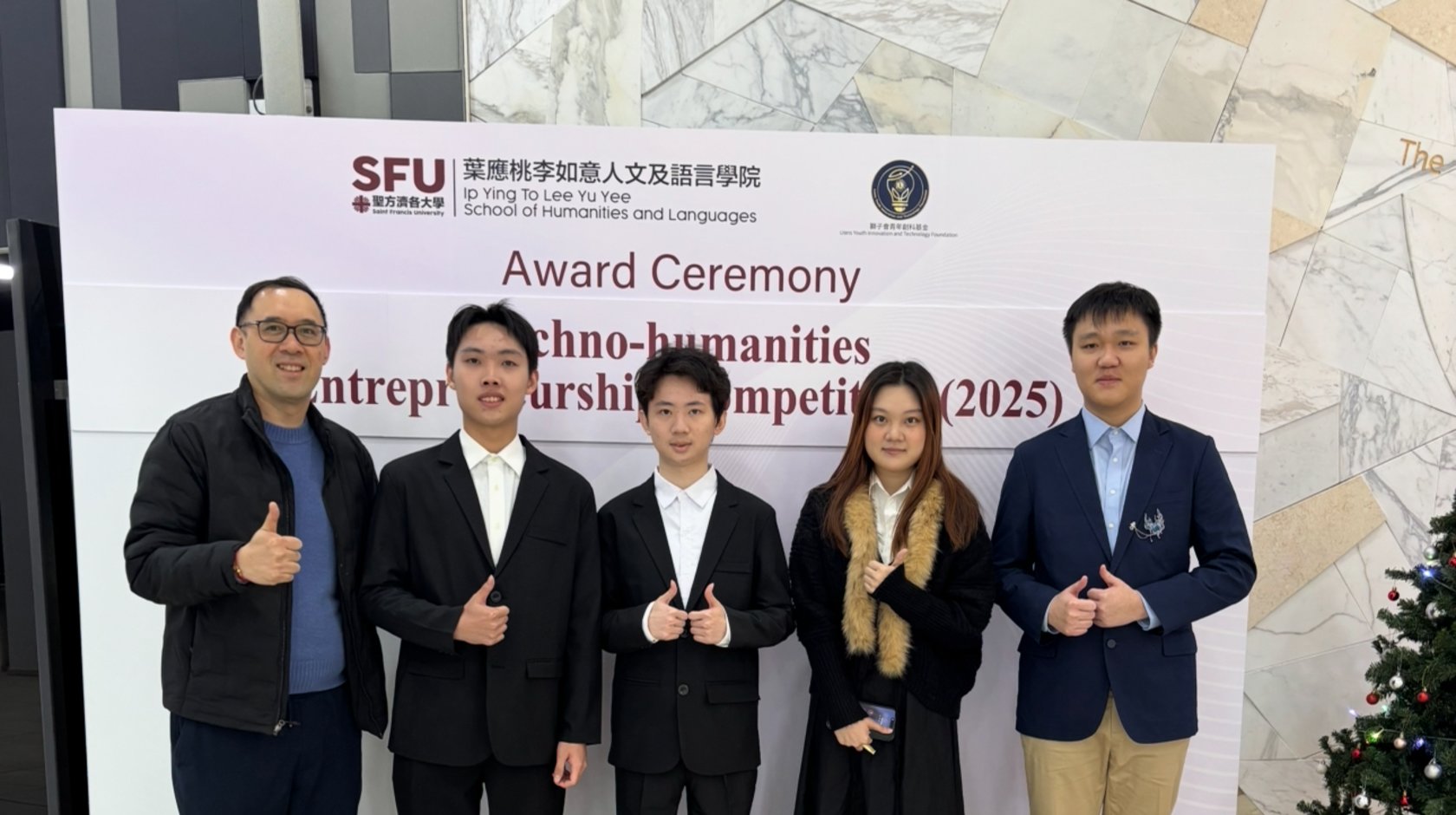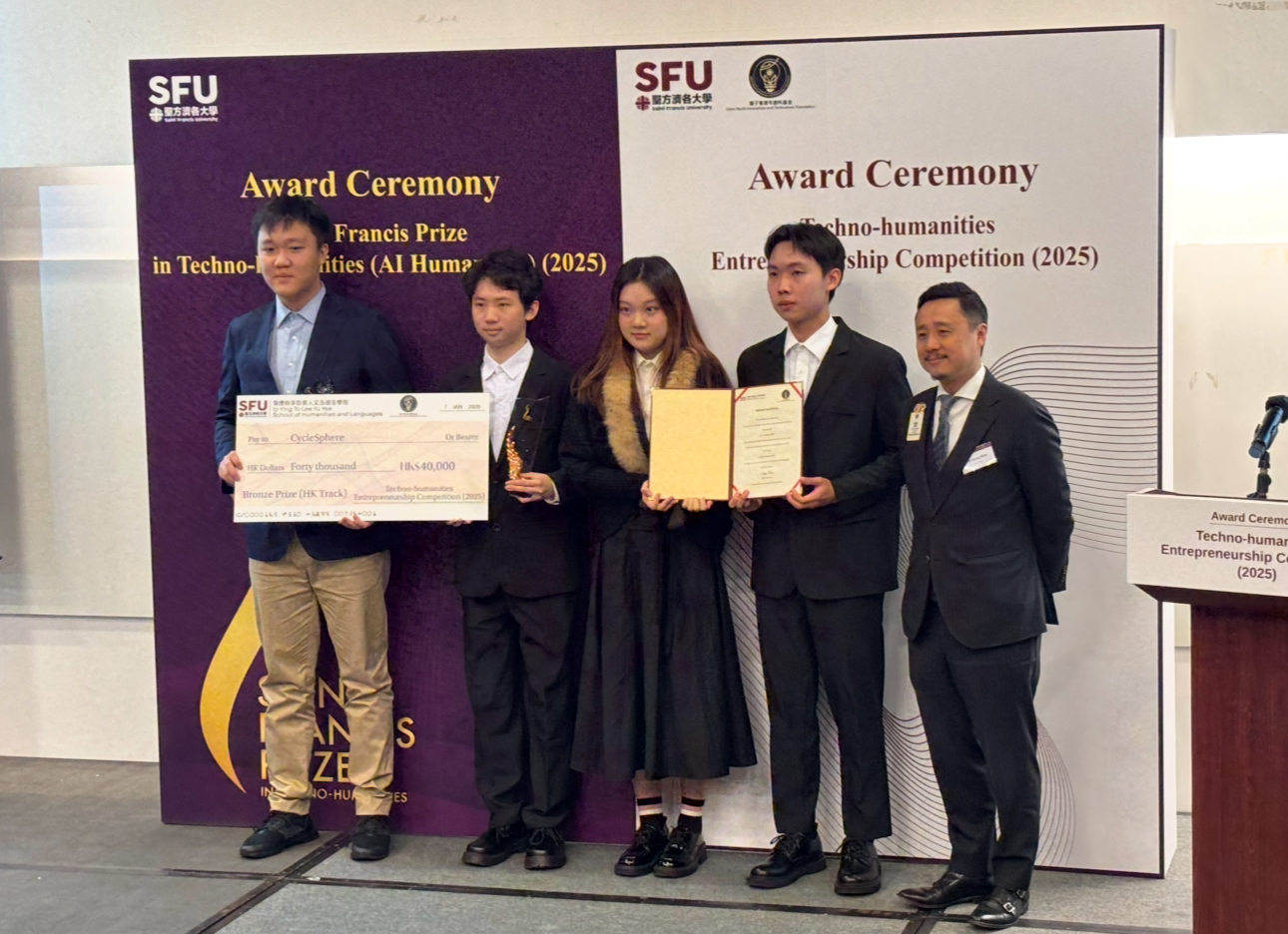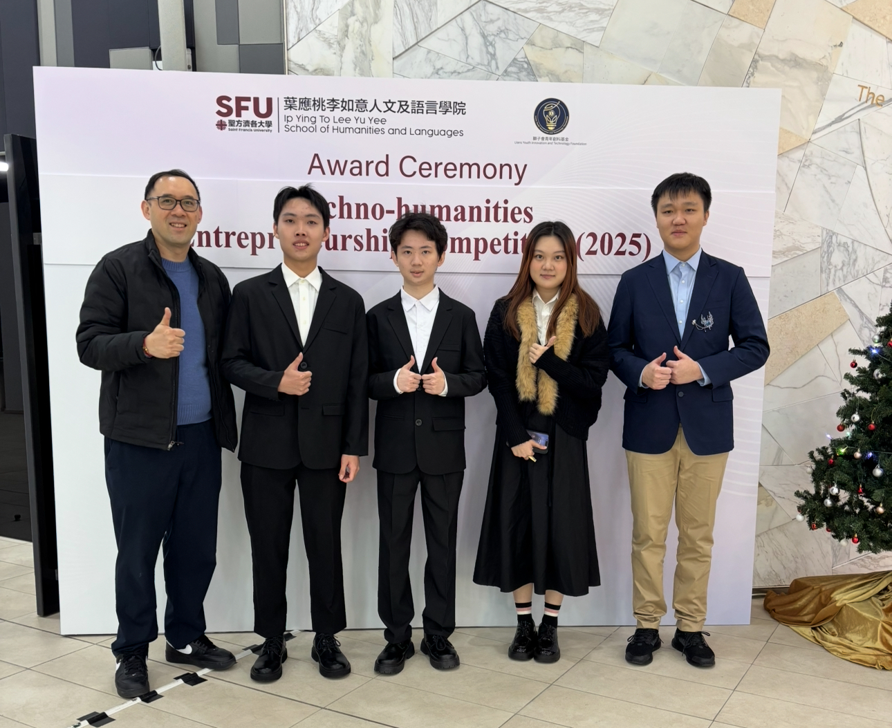 Our faculty member Dr. Wong Ying-Kit with our ADS students to achieve the Bronze Prize Award at the Techno-Humanities Entrepreneurship Competition 2025. This remarkable accomplishment highlights the dedication and innovative spirit of our faculty and students in advancing interdisciplinary knowledge.