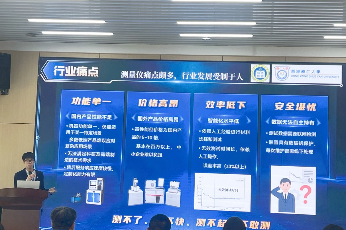 On the afternoon of January 18, 2026, the finals of the first National College Innovation and Transformation Competition (Macau Division) concluded successfully at the Hengqin·Macau Youth Entrepreneurship Valley. With the theme "Focusing on Innovation, Driving Transformation, and Creating the Future," the competition brought together 24 outstanding teams from Macau universities, presenting a high-level showcase of scientific research innovation and results transformation. The project "Grinding and Testing Science—Pioneering Domestic High-Precision Industrial Material Friction Performance Testing," involving core member Zhang Chengwei, a 2025 Applied Data Science student from Shue Yan University, stood out and won the gold medal, fully demonstrating the innovative capabilities and practical skills of the university's students.