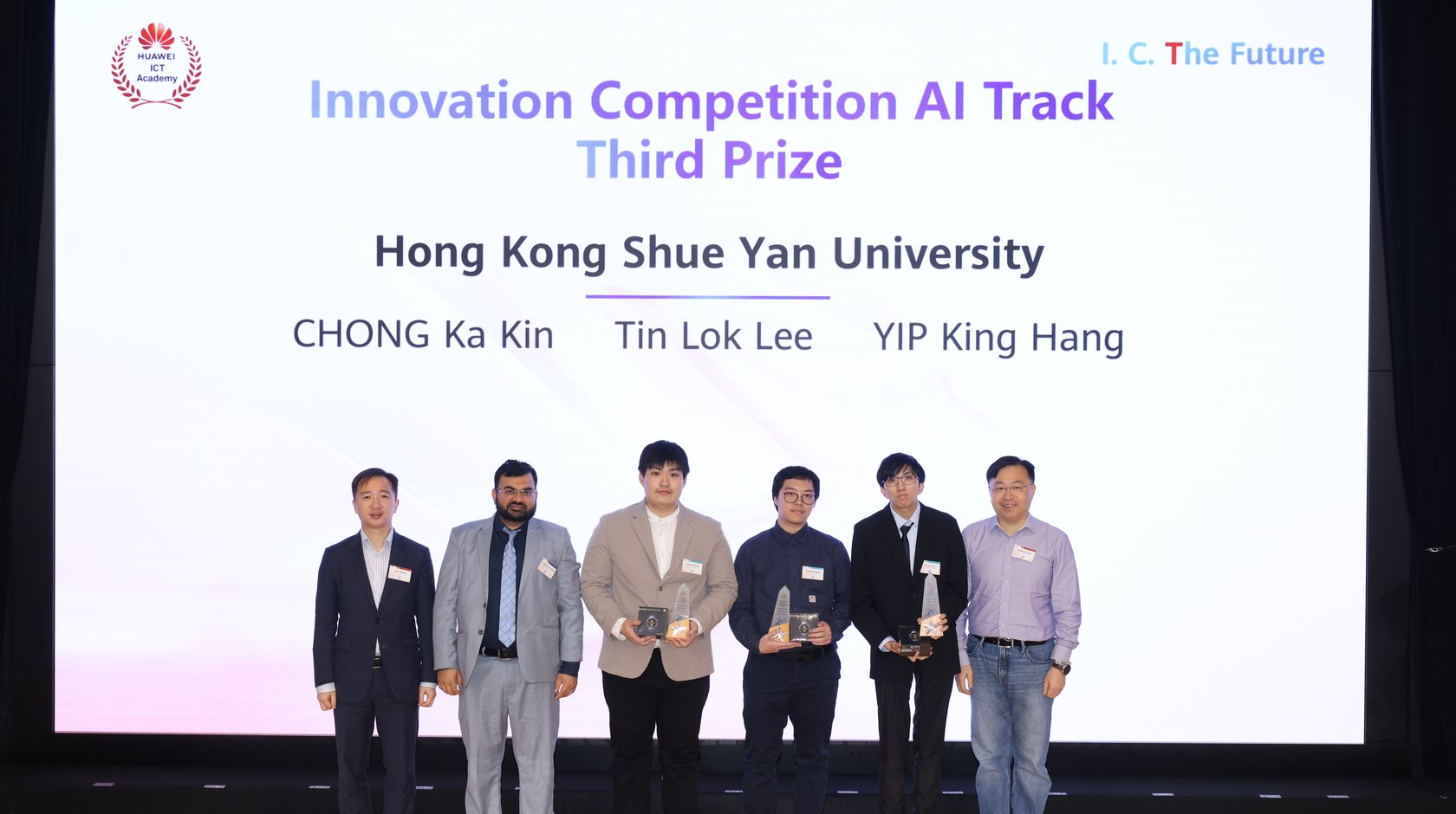 Department of Applied Data Science Year 3 students, Chong Ka Kin, Lee Tin Lok, Yip King Hang, along with faculty member Dr. Muhammad Azhar who received the award with them, participated in the prestigious Huawei ICT Competition 2025-2026 AI Innovation Track and secured 3rd prize.